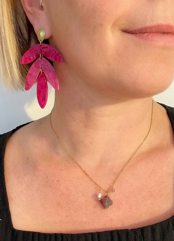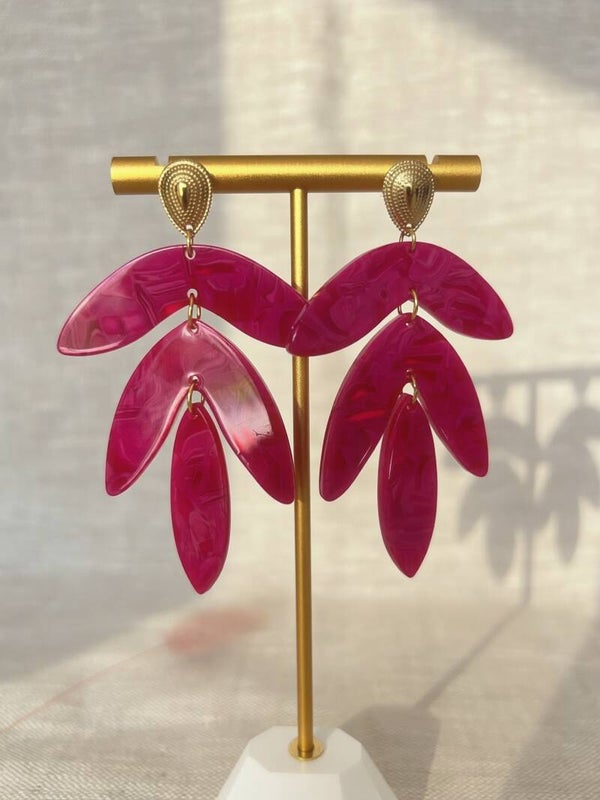 Pendentifs feuilles en acrylique Framboise marbré